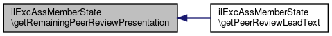 Here is the call graph for this function:| ilExcAssMemberState::getRemainingPeerReviewPresentation | ( | ) |