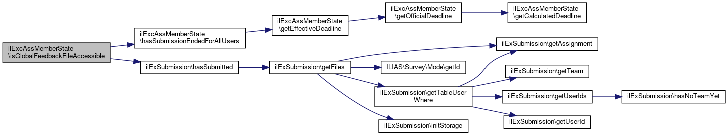 Here is the call graph for this function:| ilExcAssMemberState::isGlobalFeedbackFileAccessible | ( | ilExSubmission | $submission | ) |