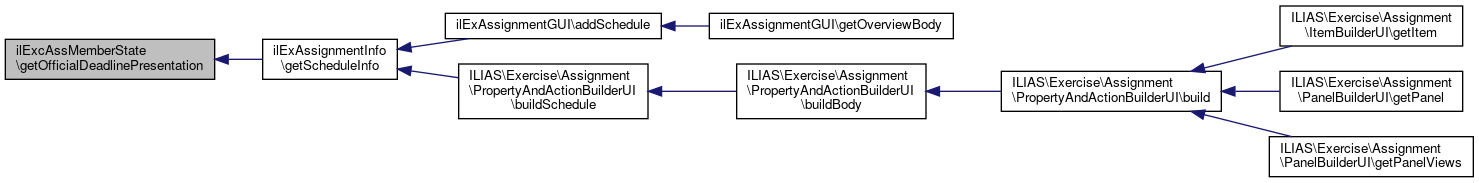 Here is the caller graph for this function:| ilExcAssMemberState::getOfficialDeadlinePresentation | ( | ) |