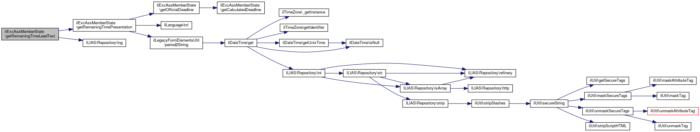 Here is the caller graph for this function:| ilExcAssMemberState::getRemainingTimeLeadText | ( | ) |
