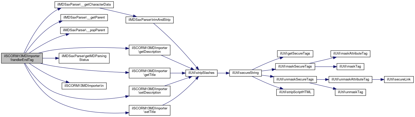 Here is the call graph for this function:| ilSCORM13MDImporter::handlerEndTag | ( | $a_xml_parser, | |