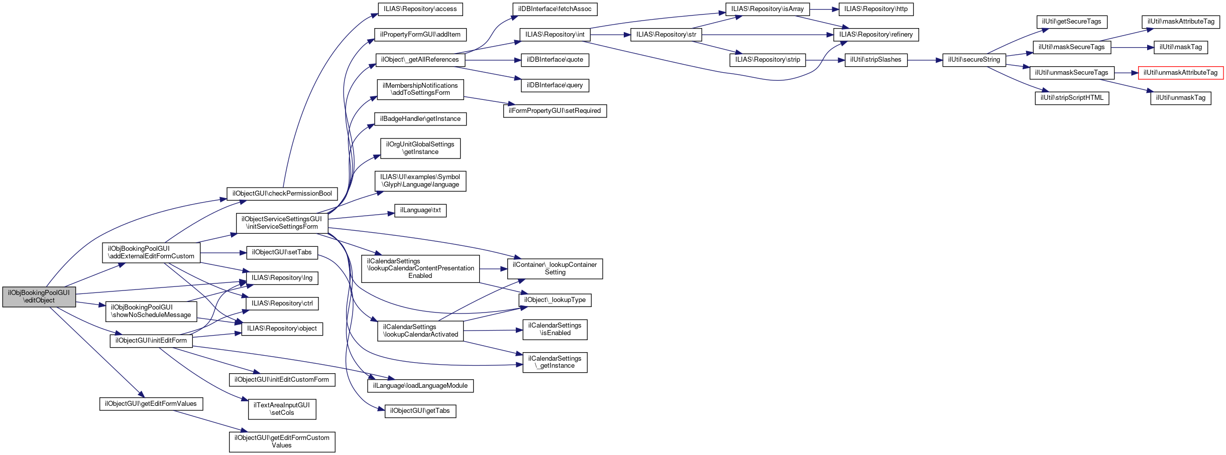 Here is the call graph for this function:| ilObjBookingPoolGUI::editObject | ( | ) |