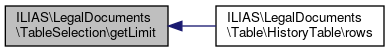 Here is the caller graph for this function:| ILIAS\LegalDocuments\TableSelection::getLimit | ( | ) |