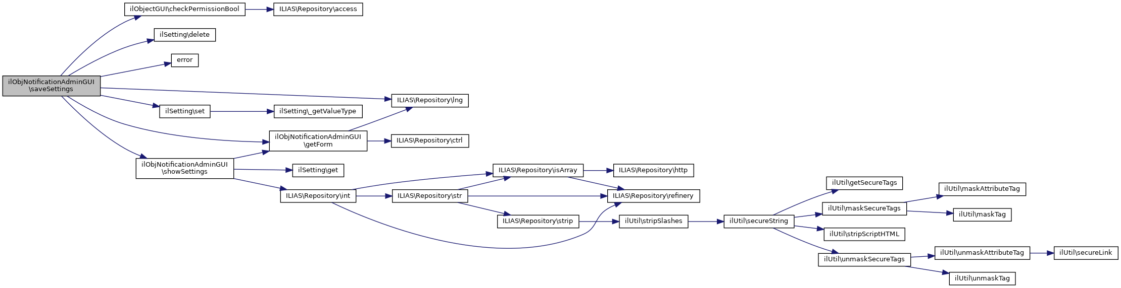 References ILIAS\Repository\ctrl(), error(), ILIAS\Repository\lng(), ilObjectGUI\prepareOutput(), saveSettings(), and showSettings().