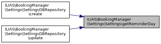 ILIAS\BookingManager\Settings\Settings::getReminderDay | ( | ) |