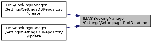 ILIAS\BookingManager\Settings\Settings::getPrefDeadline | ( | ) |
