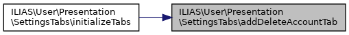 References ILIAS\User\Presentation\SettingsTabs\activateTab(), ILIAS\User\Presentation\SettingsTabs\addChangePasswordTab(), ILIAS\User\Presentation\SettingsTabs\addDeleteAccountTab(), ILIAS\User\Presentation\SettingsTabs\addSettingsTab(), ILIAS\User\Presentation\SettingsTabs\changePasswordAvailable(), and ILIAS\User\Presentation\SettingsTabs\deleteAccountAvailable().