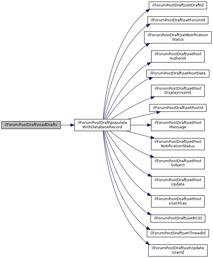 References setDraftId(), setForumId(), setNotificationStatus(), setPostAuthorId(), setPostDate(), setPostDisplayUserId(), setPostId(), setPostMessage(), setPostNotificationStatus(), setPostSubject(), setPostUpdate(), setPostUserAlias(), setRCID(), setThreadId(), and setUpdateUserId().