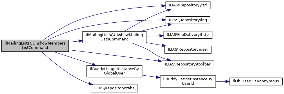 References ILIAS\Repository\ctrl(), ilUserUtil\getNamePresentation(), ILIAS\FileDelivery\http(), ILIAS\Repository\lng(), ILIAS\Repository\refinery(), and showMembersListCommand().