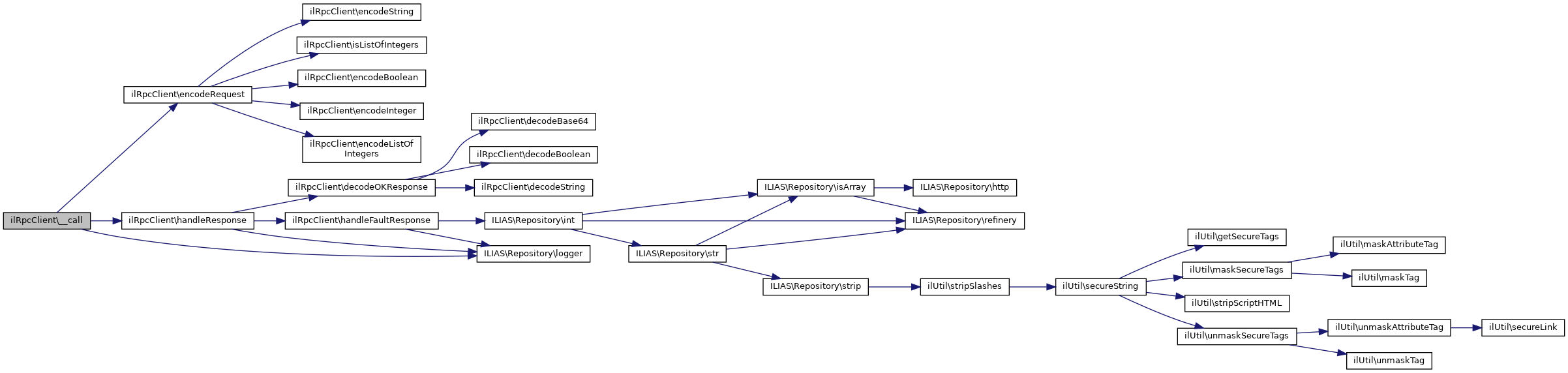 Here is the call graph for this function:| ilRpcClient::__call | ( | string | $method, |