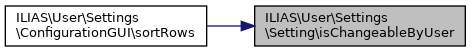 ILIAS\User\Settings\Setting::isChangeableByUser | ( | ) |