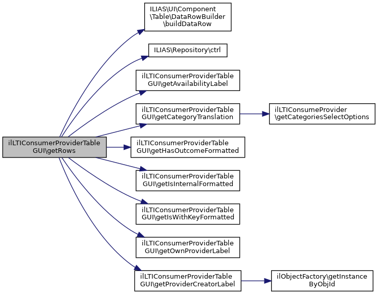 References ILIAS\UI\Component\Table\DataRowBuilder\buildDataRow(), ilLTIConsumerAdministrationGUI\CMD_SHOW_GLOBAL_PROVIDER_FORM, ILIAS\Repository\ctrl(), getAvailabilityLabel(), getCategoryTranslation(), getHasOutcomeFormatted(), getIsInternalFormatted(), getIsWithKeyFormatted(), getOwnProviderLabel(), and getProviderCreatorLabel().