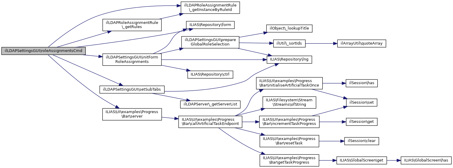 References ilLDAPRoleAssignmentRule\_getInstanceByRuleId(), ILIAS\Repository\ctrl(), ILIAS\Repository\form(), initFormRoleAssignments(), ILIAS\Repository\lng(), roleAssignmentsCmd(), setSubTabs(), and setValuesByArray().
