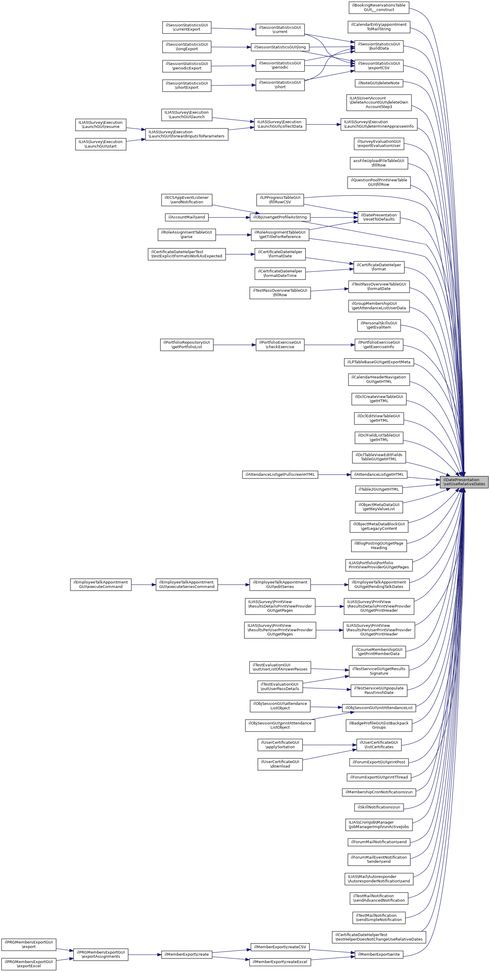 Referenced by ILIAS\Badge\Tile\__construct(), ILIAS\LegalDocuments\Table\HistoryTable\__construct(), ILIAS\LegalDocuments\ConsumerToolbox\Blocks\__construct(), ilObjCourseAccess\_checkAccess(), ilObjGroupAccess\_checkAccess(), ilObject\_lookupLastUpdate(), ilObjRemoteFile\_lookupVersionInfo(), ilBookingInfoScreenAdapter\add(), ilObjRemoteFileGUI\addCustomInfoFields(), ilCommentGUI\addItemProperties(), ilMessageGUI\addItemProperties(), ilNoteGUI\addItemProperties(), ilAppointmentPresentationGUI\addLastUpdate(), ilBookingInfoListItemPropertiesAdapter\appendProperties(), ilObjLanguageFolderGUI\buildConfirmModal(), ILIAS\Exercise\Assignment\PropertyAndActionBuilderUI\buildHead(), ilTestRandomQuestionSetConfigStateMessageHandler\buildLastSyncMessage(), ILIAS\Exercise\Assignment\PropertyAndActionBuilderUI\buildSubmission(), ilAppointmentPresentationConsultationHoursGUI\collectPropertiesAndActions(), ilConsultationHoursGUI\confirmDeleteAppointments(), ilMemberExportGUI\confirmDeleteExportFile(), ilObjSurveyQuestionPoolGUI\confirmDeleteExportFileObject(), ilObjLanguageFolderGUI\confirmRefreshSelectedObject(), ilConsultationHoursGUI\confirmRejectBooking(), ilForum\convertDate(), ilForumMailNotification\createMailDate(), ilForumMailEventNotificationSender\createMailDate(), ILIAS\User\Account\DeleteAccountGUI\deleteOwnAccountStep3(), ILIAS\Survey\Execution\LaunchGUI\determineAppraiseeInfo(), ILIAS\Survey\Execution\LaunchGUI\determineNotStartableReasons(), ilObjForumGUI\doHistoryCheck(), ilExPeerReviewGUI\editPeerReviewObject(), ilTestPlayerAbstractGUI\endingTimeReached(), ilSessionStatisticsGUI\exportCSV(), ilSurveyEvaluationGUI\exportEvaluationUser(), ilECSSetting\fetchCertificateExpiration(), ilCourseRegistrationGUI\fillRegistrationPeriod(), ilGroupRegistrationGUI\fillRegistrationPeriod(), ilEmployeeTalkTableGUI\fillRow(), ilAdvancedMDRecordExportFilesTableGUI\fillRow(), ilBookingReservationsTableGUI\fillRow(), ilCalendarChangedAppointmentsTableGUI\fillRow(), ilCalendarInboxSharedTableGUI\fillRow(), ilCmiXapiStatementsTableGUI\fillRow(), ilPageHistoryTableGUI\fillRow(), ilCourseParticipantsTableGUI\fillRow(), ilAssignmentsTableGUI\fillRow(), ilExAssignmentListTextTableGUI\fillRow(), ilExAssignmentTeamLogTableGUI\fillRow(), ilExportSelectionTableGUI\fillRow(), ilSubItemSelectionTableGUI\fillRow(), ilFileVersionsTableGUI\fillRow(), ilGroupParticipantsTableGUI\fillRow(), ilHelpModuleTableGUI\fillRow(), ilHistoryTableGUI\fillRow(), ilMediaCastTableGUI\fillRow(), ilSubscriberTableGUI\fillRow(), ilWaitingListTableGUI\fillRow(), ilMemberExportFileTableGUI\fillRow(), ilNewsForContextTableGUI\fillRow(), ilPDNewsTableGUI\fillRow(), ilWorkspaceShareTableGUI\fillRow(), ilAdminSubItemsTableGUI\fillRow(), ilTrashTableGUI\fillRow(), ilSCORMTrackingUsersTableGUI\fillRow(), ilRepositoryUserResultTableGUI\fillRow(), ilSearchResultTableGUI\fillRow(), ilSurveyQuestionbrowserTableGUI\fillRow(), ilSurveyResultsUserTableGUI\fillRow(), ilSurveyAppraiseesTableGUI\fillRow(), ilSurveyCodesTableGUI\fillRow(), ilSurveyMaintenanceTableGUI\fillRow(), ilSurveyQuestionsTableGUI\fillRow(), ilTestPersonalDefaultSettingsTableGUI\fillRow(), ILIAS\Test\Scoring\Manual\TestScoringByParticipantPassesOverviewTableGUI\fillRow(), assFileUploadFileTableGUI\fillRow(), ilQuestionBrowserTableGUI\fillRow(), ilQuestionPoolPrintViewTableGUI\fillRow(), ilLPProgressTableGUI\fillRow(), ilTrMatrixTableGUI\fillRow(), ilTrObjectUsersPropsTableGUI\fillRow(), ilTrUserObjectsPropsTableGUI\fillRow(), ilUserLPTableGUI\fillRow(), ilUserTableGUI\fillRow(), ilECSExportedContentTableGUI\fillRow(), ilECSImportedContentTableGUI\fillRow(), ilECSServerTableGUI\fillRow(), ilWikiContributorsTableGUI\fillRow(), ilWikiPagesTableGUI\fillRow(), ilWikiRecentChangesTableGUI\fillRow(), ilBookingReservationsTableGUI\fillRowCSV(), ilLPProgressTableGUI\fillRowCSV(), ilCertificateDateHelper\format(), ilWebDAVMountInstructionsDocumentTableGUI\formatCellValue(), ilTestPassOverviewTableGUI\formatDate(), ILIAS\AdministrativeNotification\DataRetrieval\formatDate(), ILIAS\Cron\Job\Manager\UI\JobTable\formatLastRun(), ilCmiXapiHighscoreReport\formatRawTimestamp(), ILIAS\Cron\Job\Manager\UI\JobTable\formatStatusInfo(), ilObjTestGUI\forwardToInfoScreen(), ILIAS\Calendar\ConsultationHours\BookingCancellationGUI\getAppointmentTitle(), ILIAS\OnScreenChat\Provider\OnScreenChatProvider\getAsyncItem(), ilGroupMembershipGUI\getAttendanceListUserData(), ilPageObjectGUI\getBlockingInfoMessage(), ilStudyProgrammeAutoMembershipsTableGUI\getDatePresentation(), ILIAS\User\Profile\PublicProfileGUI\getEmbeddable(), ilPersonalSkillsGUI\getEvalItem(), ilPortfolioExerciseGUI\getExerciseInfo(), ilLPTableBaseGUI\getExportMeta(), ILIAS\Registration\RegistrationFilterComponent\getFilterFields(), ilPollContentRenderer\getFormattedDate(), ilADTDatePresentationBridge\getHTML(), ilADTDateTimePresentationBridge\getHTML(), ilCalendarAgendaListGUI\getHTML(), ilCalendarHeaderNavigationGUI\getHTML(), ilAttendanceList\getHTML(), ilNewsForContextBlockGUI\getInfoForData(), ilBookingObjectsTableGUI\getItems(), ilUserTableGUI\getItems(), ilNoteGUI\getItemTitle(), ILIAS\Test\Presentation\TestScreenGUI\getLauncher(), ilPDMailBlockGUI\getListItemForData(), ilPDTasksBlockGUI\getListItemForData(), ilBookingProcessWithScheduleGUI\getMissingAvailabilityMessage(), ILIAS\Chatroom\GlobalScreen\ChatInvitationNotificationProvider\getNotifications(), ILIAS\Contact\Provider\ContactNotificationProvider\getNotifications(), ilBlogPostingGUI\getPageHeading(), ILIAS\Portfolio\PortfolioPrintViewProviderGUI\getPages(), ilExPeerReviewGUI\getPeerReviewReceiverPanel(), ilEmployeeTalkAppointmentGUI\getPendingTalkDates(), ilObjSession\getPresentationTitle(), ILIAS\Survey\PrintView\ResultsDetailsPrintViewProviderGUI\getPrintHeader(), ILIAS\Survey\PrintView\ResultsPerUserPrintViewProviderGUI\getPrintHeader(), ilCourseMembershipGUI\getPrintMemberData(), ilObjUser\getProfileAsString(), ilObjFileListGUI\getProperties(), ilObjForumListGUI\getProperties(