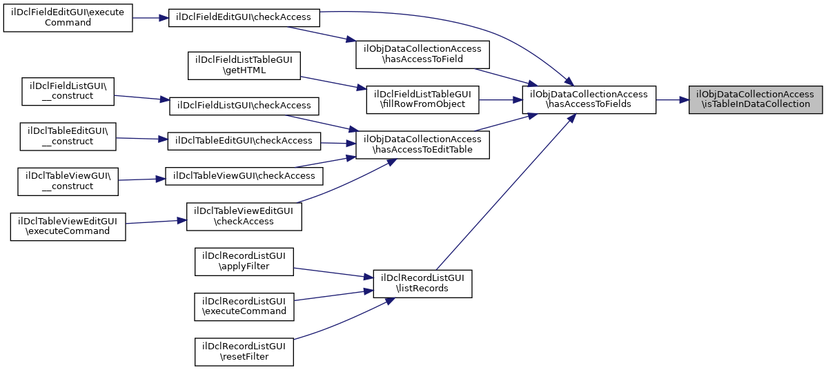 Referenced by ilDclTableEditGUI\checkAccess(), ilDclTableListGUI\checkAccess(), ilDclRecordListGUI\createSwitchers(), ilDclDetailedViewGUI\doExtReplace(), ilDclTable\getVisibleTableViews(), hasAccessToFields(), hasAccessToTable(), hasPermissionToAddRecord(), ilDclTable\hasPermissionToDeleteRecord(), ilDclTable\hasPermissionToDeleteRecords(), ilDclTable\hasPermissionToEditRecord(), ilDclTable\hasPermissionToViewRecord(), ilDclRecordEditGUI\initForm(), ilDclRecordEditGUI\save(), and ilObjDataCollectionGUI\setTableId().