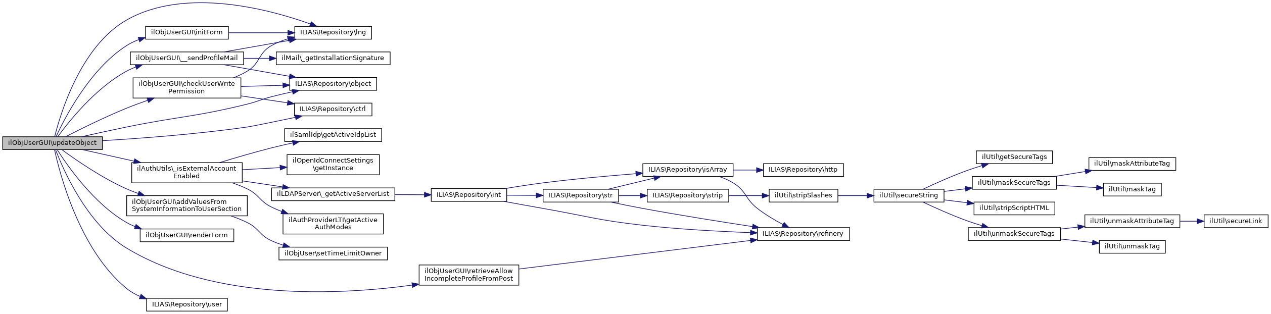 References Vendor\Package\$e, ilObjectGUI\$object, __sendProfileMail(), ilAuthUtils\_isExternalAccountEnabled(), addValuesFromSystemInformationToUserSection(), checkUserWritePermission(), ILIAS\Repository\ctrl(), initForm(), ILIAS\Repository\lng(), ILIAS\Repository\object(), ilObjUser\PASSWD_PLAIN, renderForm(), retrieveAllowIncompleteProfileFromPost(), SYSTEM_ROLE_ID, SYSTEM_USER_ID, and ILIAS\Repository\user().