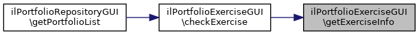 References $exercise, $info, $pe, ilPortfolioExercise\getAssignmentsOfPortfolio(), and getExerciseInfo().