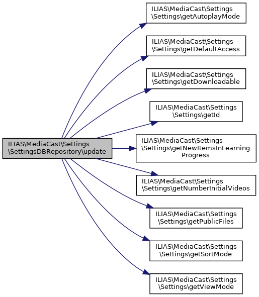 ILIAS\MediaCast\Settings\SettingsDBRepository::update | ( | Settings | $settings | ) |