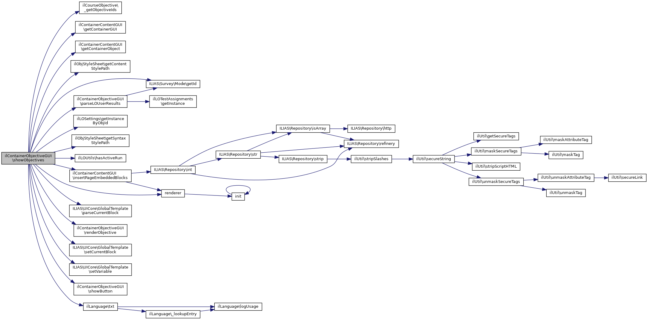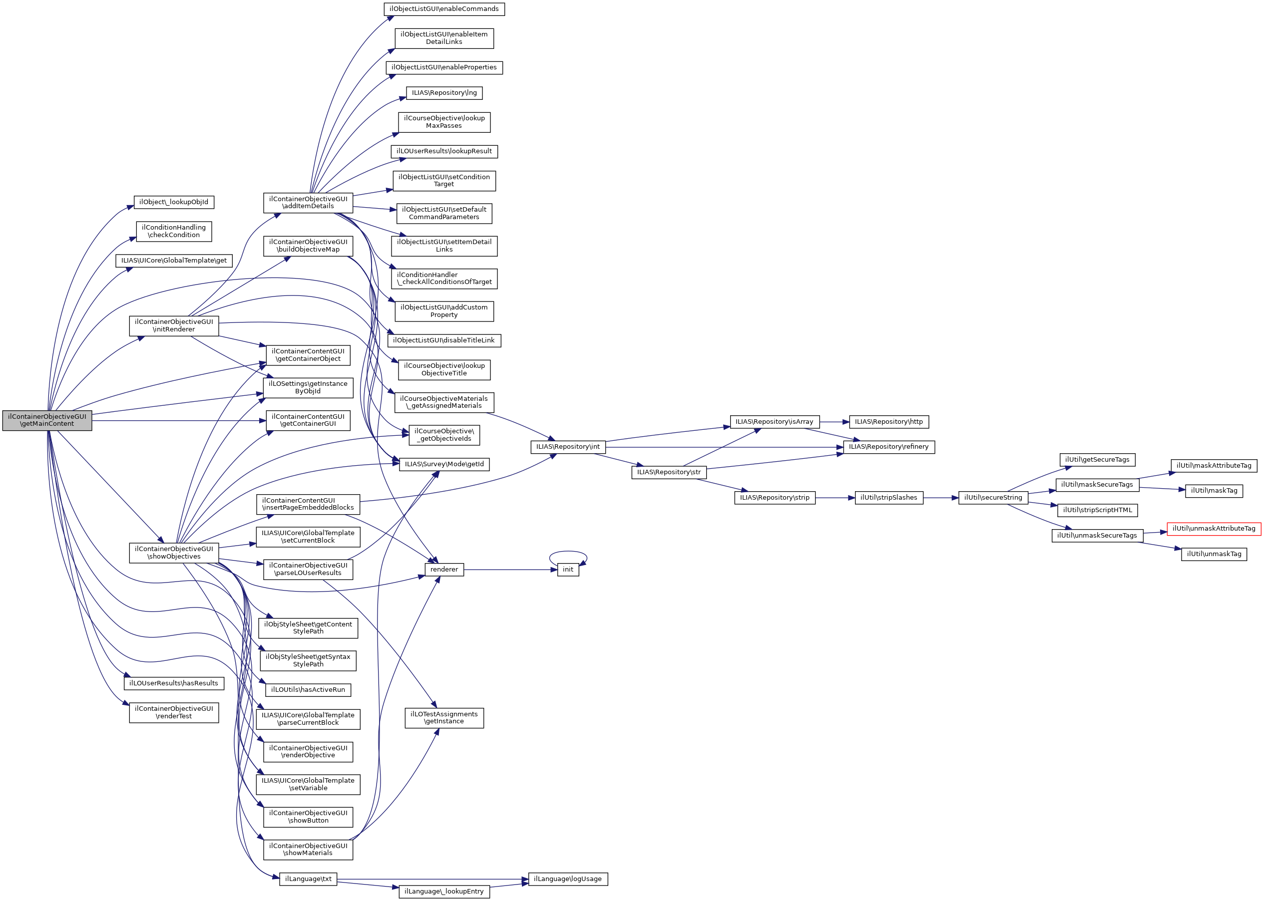 References $ilSetting, ilContainerContentGUI\$lng, $output_html, ilContainerContentGUI\$settings, ilContainerContentGUI\$tpl, ilCourseObjective\_getObjectiveIds(), ilAccordionGUI\FIRST_OPEN, ilContainerContentGUI\getContainerGUI(), ilContainerContentGUI\getContainerObject(), ilObjStyleSheet\getContentStylePath(), ILIAS\Survey\Mode\getId(), ilLOSettings\getInstanceByObjId(), ilObjStyleSheet\getSyntaxStylePath(), ilLOUtils\hasActiveRun(), ilContainerContentGUI\insertPageEmbeddedBlocks(), ILIAS\UICore\GlobalTemplate\parseCurrentBlock(), parseLOUserResults(), renderer(), renderObjective(), ILIAS\UICore\GlobalTemplate\setCurrentBlock(), ILIAS\UICore\GlobalTemplate\setVariable(), showButton(), ilLanguage\txt(), and ilLOSettings\TYPE_TEST_INITIAL.