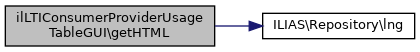 ilLTIConsumerProviderUsageTableGUI::getHTML | ( | ) |