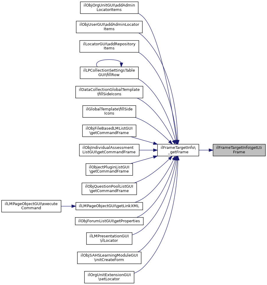 Referenced by ilObjOrgUnitGUI\addAdminLocatorItems(), ilObjUserGUI\addAdminLocatorItems(), ilLocatorGUI\addRepositoryItems(), ilLPCollectionSettingsTableGUI\fillRow(), ilDataCollectionGlobalTemplate\fillSideIcons(), ilGlobalTemplate\fillSideIcons(), ilObjFileBasedLMListGUI\getCommandFrame(), ilObjIndividualAssessmentListGUI\getCommandFrame(), ilObjectPluginListGUI\getCommandFrame(), ilObjQuestionPoolListGUI\getCommandFrame(), ilLMPageObjectGUI\getLinkXML(), ilObjForumListGUI\getProperties(), ilLMPresentationGUI\ilLocator(), ilObjSAHSLearningModuleGUI\initCreateForm(), and ilOrgUnitExtensionGUI\setLocator().