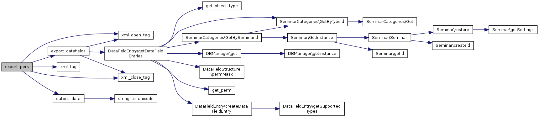 This function gets the data of an institute and writes it into $data_object. It calls one of the functions export_sem, export_pers or export_teilis and then output_data.