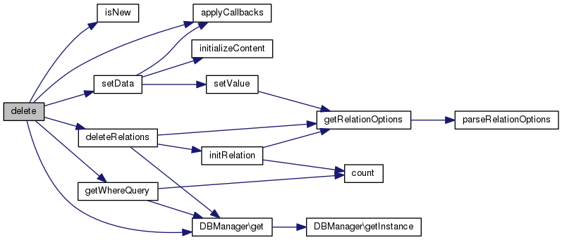 sends a delete message to all related objects if a relation has a callback for 'on_delete' configured, the callback is invoked instead