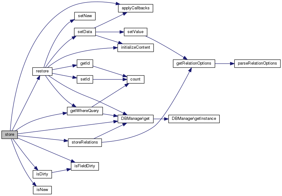 sends a store message to all initialized related objects if a relation has a callback for 'on_store' configured, the callback is instead invoked