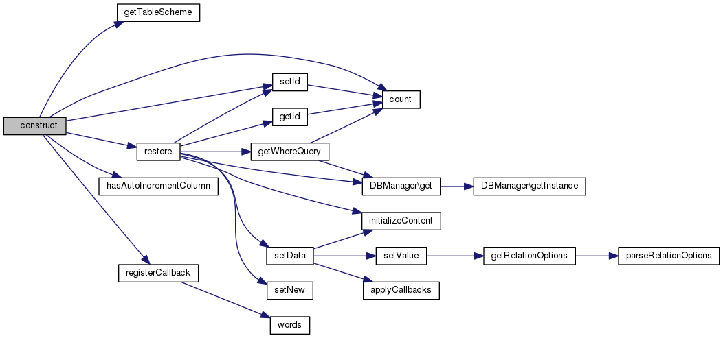 constructor, give primary key of record as param to fetch corresponding record from db if available, if not preset primary key with given value. Give null to create new record