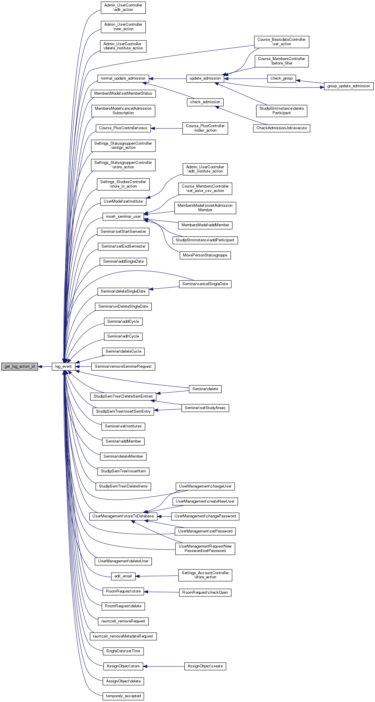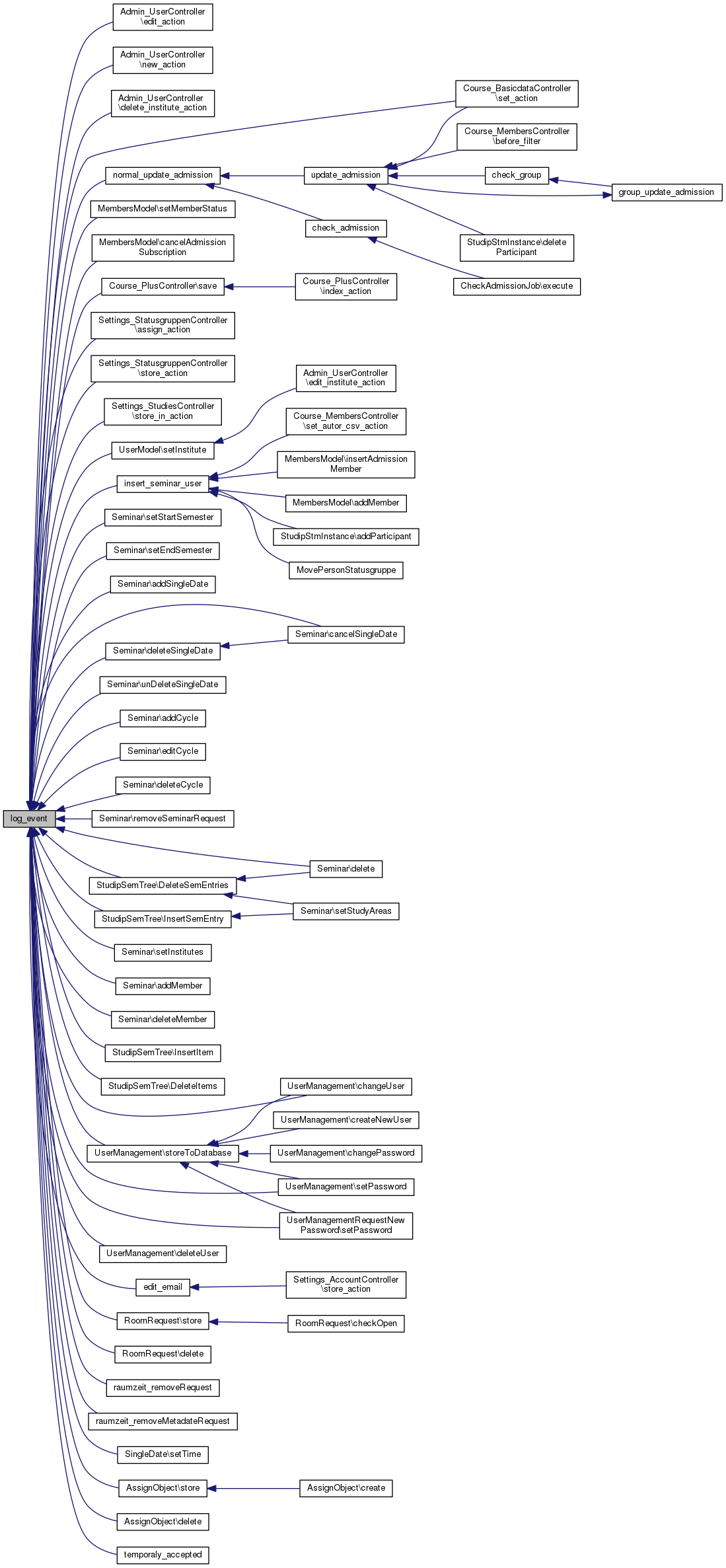 | log_event ($action, $affected=null, $coaffected=null, $info=null, $dbg_info=null, $user_id=null) | |