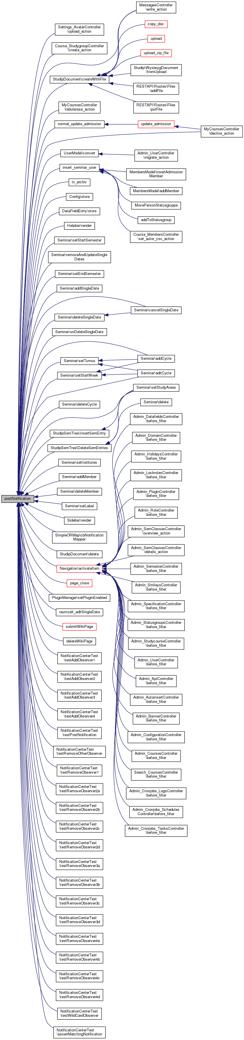 The NotificationCenter class is the central event dispatcher for Stud.IP. Objects interested in receiving notifications for particular events need to register with the NotificationCenter: