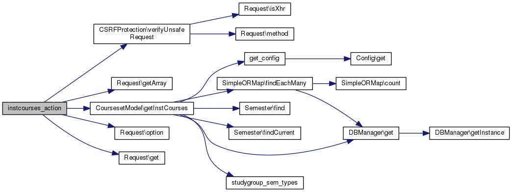 Fetches courses at institutes specified by a given course set, filtered by a given semester.