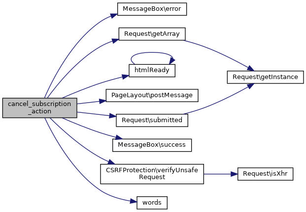 | | cancel_subscription_action ($cmd, $status, $user_id=null) |