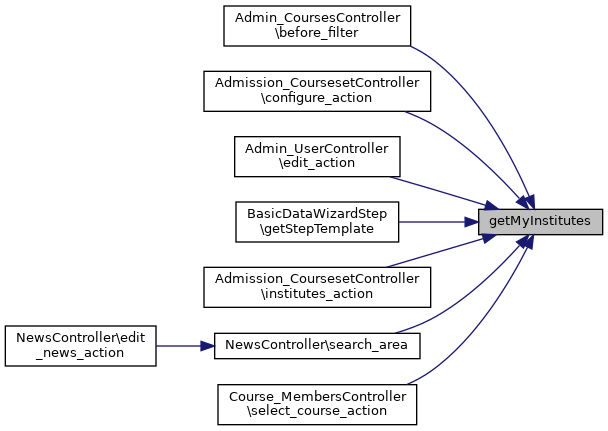 returns an array of all institutes to which the given user belongs, ordered by faculties and name. The user role for each institute is included