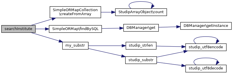 Finds all institutes by given search string. Searches for the name of existing or already deleted institutes.