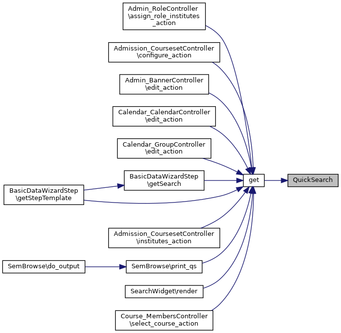 Lastly you can replace the second argument of the constructor (or get-method) by an object whose class extends the SearchType-class. This might be useful to create your own searches and handle them with oop-style or even use a totally different search-engine like lucene-index! All you need to do so is implement your searchclass and follow this example: //code-begin class TeacherSearch extends SearchType { ... } $searcher = new TeacherSearch(); print QuickSearch::get("username", $searcher)->withButton->render(); //code-end Watch the SearchType class in lib/classes/searchtypes/SearchType.class.php for details. Enjoy!