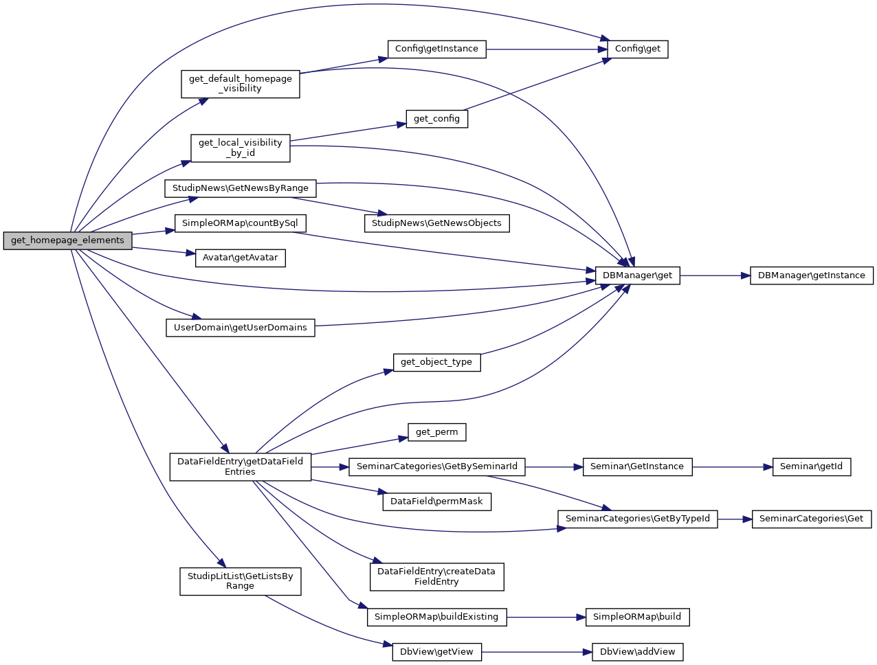array An array containing all available homepage elements together with their visibility settings in the form $name => $visibility.