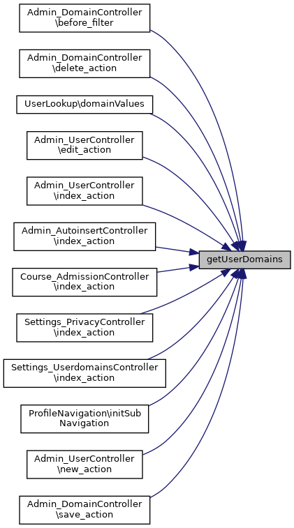 Get an array of all user domains for a specific seminar. Returns an array of UserDomain objects.