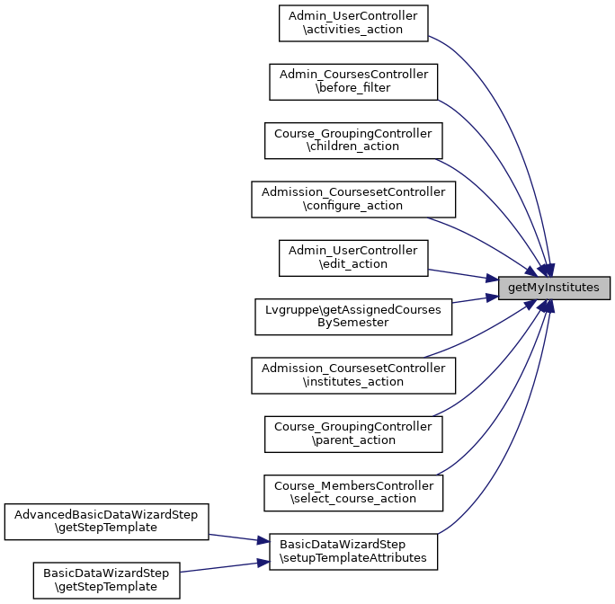 returns an array of all institutes to which the given user belongs, ordered by faculties and name. The user role for each institute is included