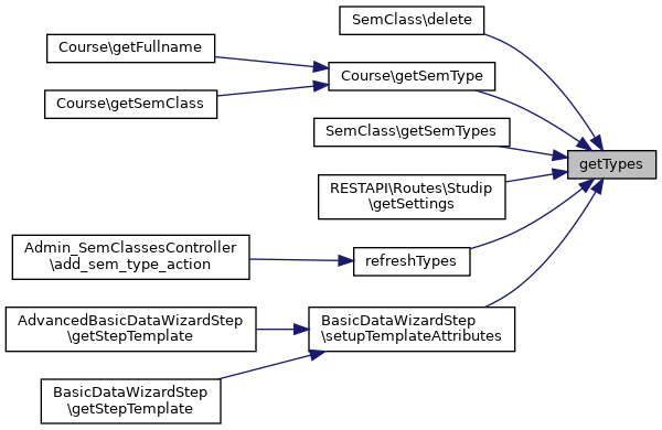 Returns an array of all SemTypes in Stud.IP. Equivalent to global $SEM_TYPE variable. This variable is statically stored in this class.