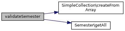 Validates the semester for required valies, properness of values and possible overlaps with other semesters.