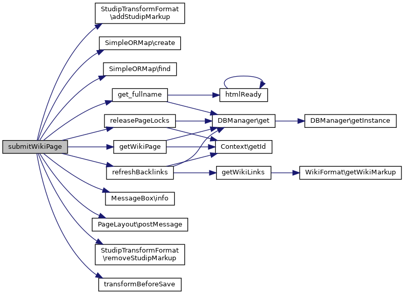 | submitWikiPage ($keyword, $version, $body, $user_id, $range_id) | |
