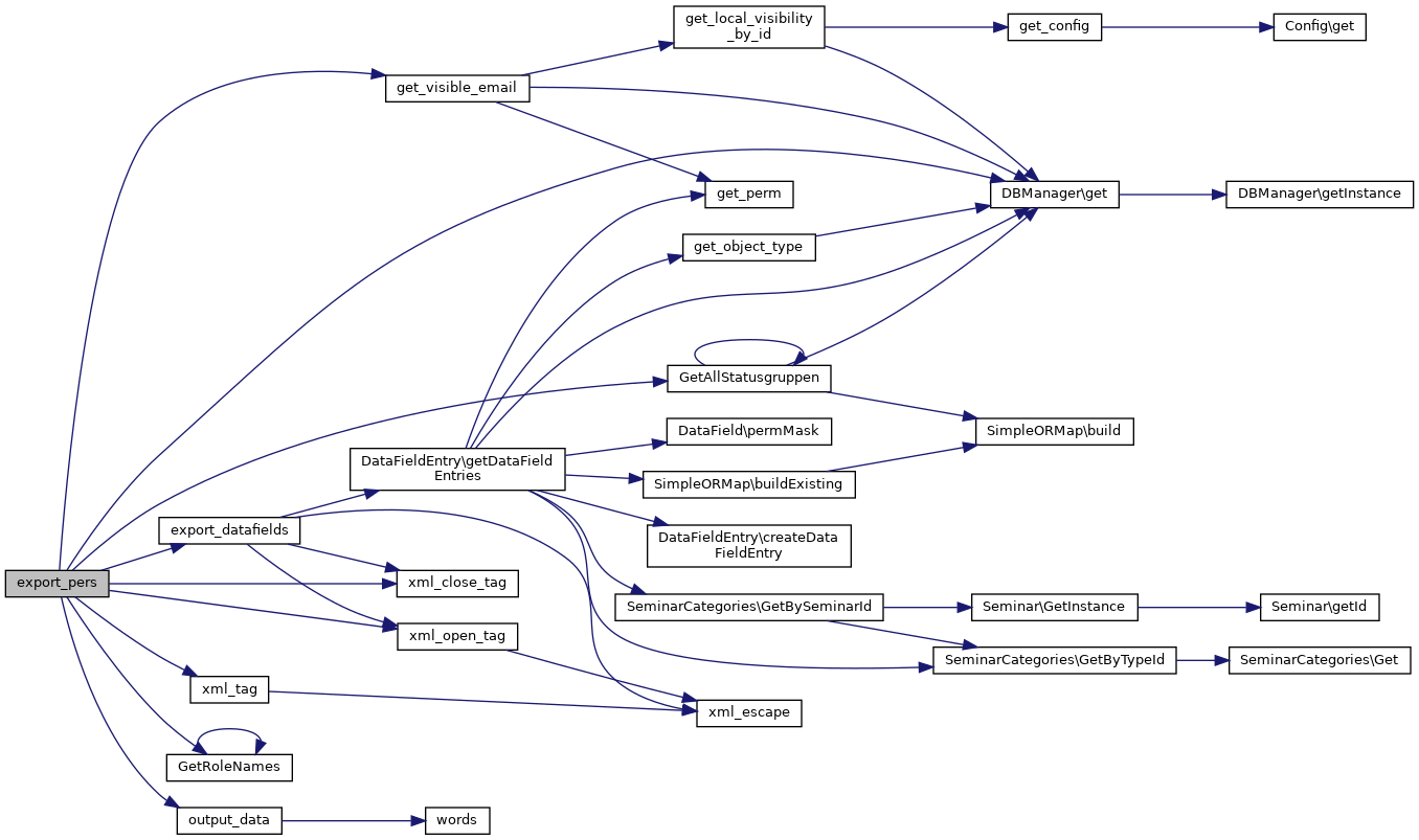 This function gets the data of an institute and writes it into $data_object. It calls one of the functions export_sem, export_pers or export_teilis and then output_data.
