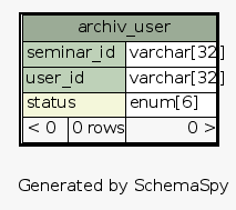 | Table studip20.archiv_user | Generated by SchemaSpy |