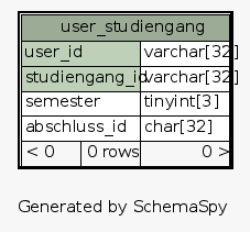 | Table studip20.user_studiengang | Generated by SchemaSpy |
