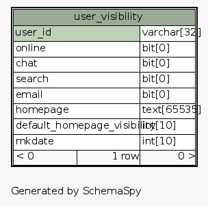 | Table studip20.user_visibility | Generated by SchemaSpy |
