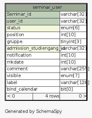 | Table studip23.seminar_user | Generated by SchemaSpy |