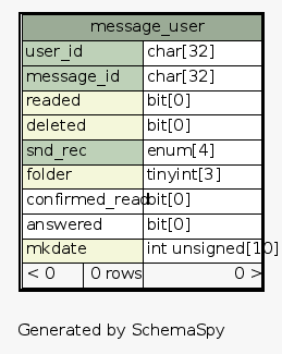 | message_id + snd_rec + user_id | Primary key | Asc/Asc/Asc | PRIMARY |