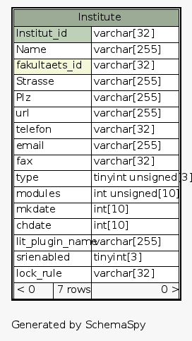 | Table studipjlu_31.Institute | Generated by SchemaSpy |