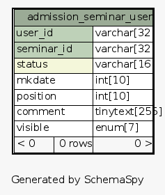 | Table studipjlu_31.admission_seminar_user | Generated by SchemaSpy |